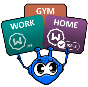This means you can specify individual protocols to use on your favorite networks; Wireguard at home, OpenVPN at the office, and IKEv2 at the gym (if that’s your preference).